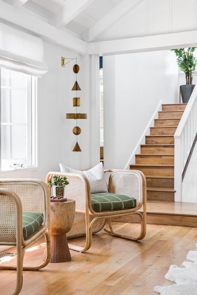 Think fewer pieces, but each one chosen with care. A warm rattan coffee table. Linen curtains that let in morning light. Cushions in rust, taupe, or terracotta that look like they belong in a sunset.